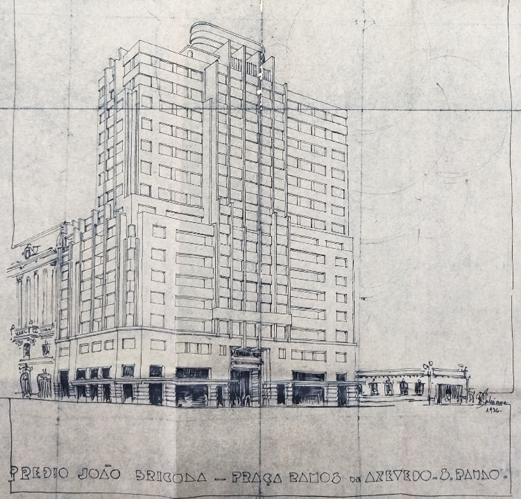 São Paulo crescia exponencialmente na transição do século XIX para o século XX. Correntes migratórias, influenciadas pelo ciclo do café e por políticas de imigração levaram a população de 64.934 habitantes, em 1890, para 579.033 em 1920[10]. Em um cenário de vertiginoso crescimento, a taipa dava lugar ao tijolo e ao concreto e a cidade espraiava-se em um grande canteiro de obras. Nessa esteira, o Banco do Estado de São Paulo (Banespa) buscava construir uma nova sede, proporcional ao faustoso momento. O local escolhido era ocupado pelo Palacete João Brícola, na Praça Antônio Prado com a Rua XV de Novembro, logradouro das principais casas bancárias à época. O imóvel pertencia à Santa Casa de Misericórdia, herança de João Brícola, um dos provedores da instituição.