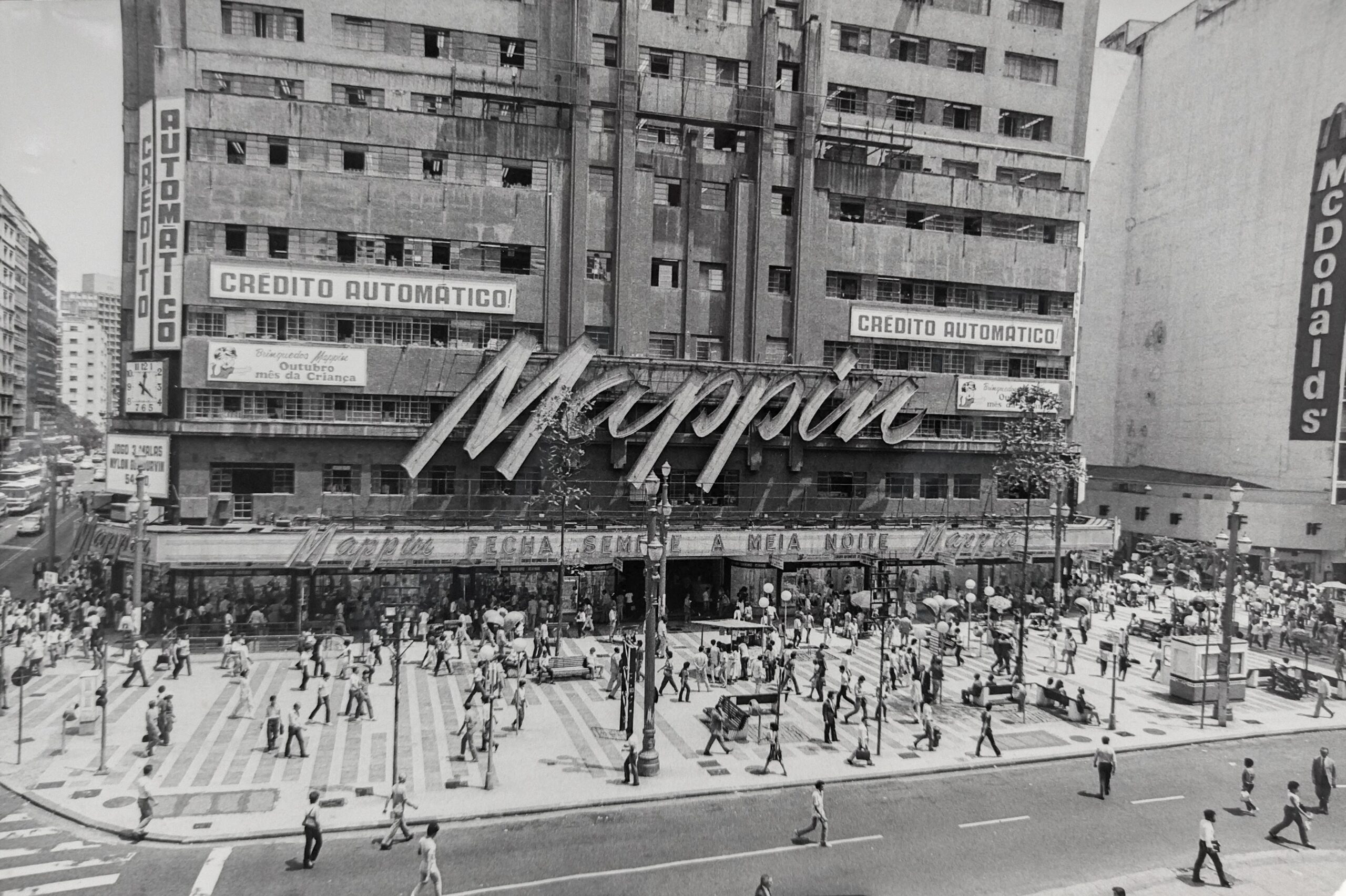 Sua primeira loja ficava na rua XV de novembro, em 1919 muda-se para a Praça do Patriarca, onde se consolida e adquire expressivo prestígio. Nos anos de 1930, o edifício eclético que ocupava já se mostrava acanhado e o Mappin começaria a planejar uma mudança. Em 14 de abril de 1939, se transfere para um grande e moderno prédio, o Edifício João Brícola, na Praça Ramos de Azevedo, já com 50 departamentos e 500 funcionários (LOBATO, 2018), levando consigo seu marcante relógio inglês, que já fazia parte da identidade loja e que permanece até hoje na fachada do prédio como um último “vestígio insistente e permanente do Mappin” (PITTERI, 2024, p.26).